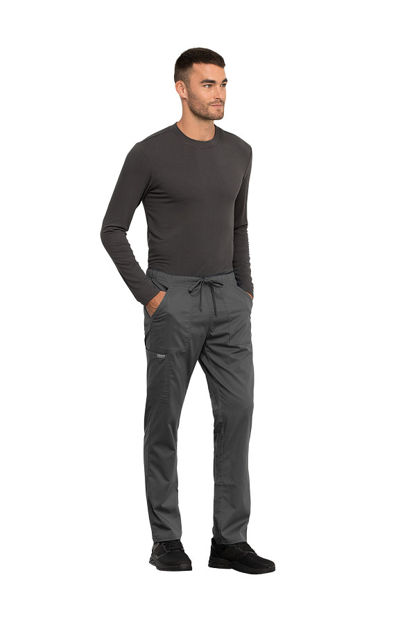 Our core Unisex mid rise pant features a functional drawstring and elastic incased around the full waistband, four large pockets, two front pockets, one cargo, and one back pocket. Leg Opening 16 1/2″. Inseam: 28 1/2″ (S)