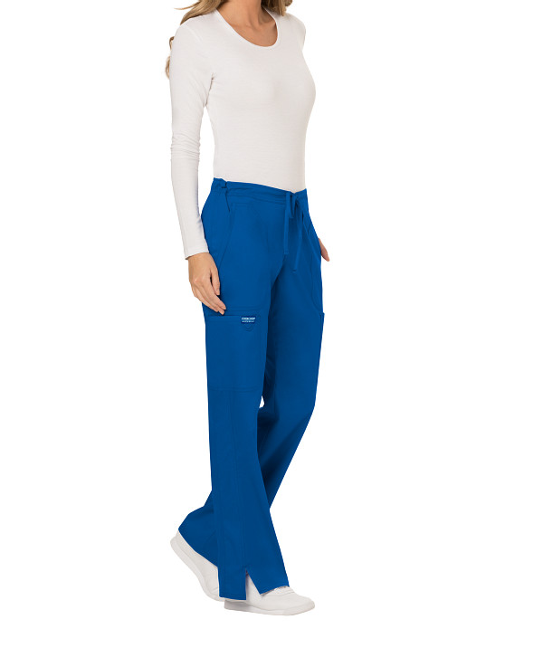 A Modern Classic fit, mid rise, moderate flare leg pant features a functional drawstring and back elastic waistband. Also featured are front patch pockets, two cargo pockets, a logo label with bungee loop, back pocket and side vents. Inseam: 28 1/2”
